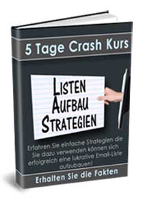 Im Listen-Aufbau- Strategien Fünf-Tage Crash Kurs werden Sie lernen was Sie benötigen, um sich eine eigene lukrative Email-Liste aufzubauen.